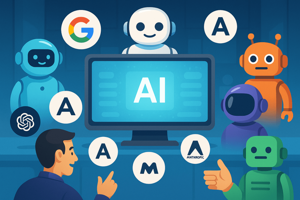 Les plateformes “multi-IA” sont des services en ligne qui regroupent plusieurs intelligences artificielles au même endroit et accessibles via un abonnement unique. Au lieu de jongler entre différentes applications (chatbots, générateurs d’images, assistants vocaux, etc.) et de multiplier les comptes et paiements, ces solutions offrent un hub central permettant de passer facilement de l’une à l’autre futura-sciences.compromptfacile.fr. Par exemple, un même espace peut donner accès à des modèles de conversation comme ChatGPT d’OpenAI ou Claude d’Anthropic, tout en incluant des outils de génération d’images (Midjourney, Stable Diffusion…), de transcription audio ou de création vidéo journaldugeek.compcworld.com. L’objectif est d’offrir une expérience unifiée : l’utilisateur choisit sa tâche (rédaction d’un texte, création d’une image, résumé d’un document, etc.), et la plateforme lui propose ou lui permet de sélectionner l’IA la plus adaptée parmi celles disponibles journaldugeek.com. En somme, ces plateformes jouent le rôle de courtiers en IA, facilitant l’accès aux “meilleures” IA du moment à partir d’un seul outil.